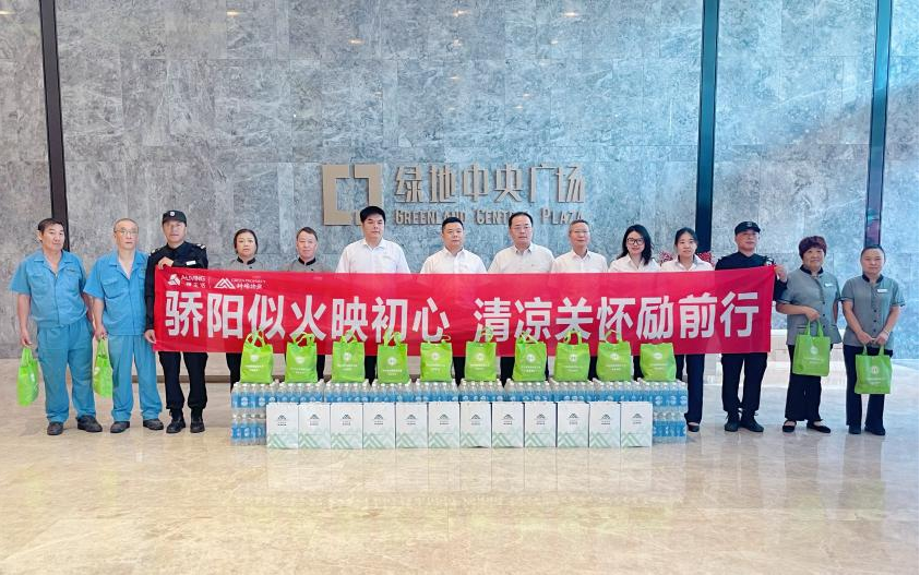 在上海区域,公司总经理助理龚玮达、武德峰亲自带队,前往绿地中环广场、世纪同乐等多个项目现场慰问一线员工。